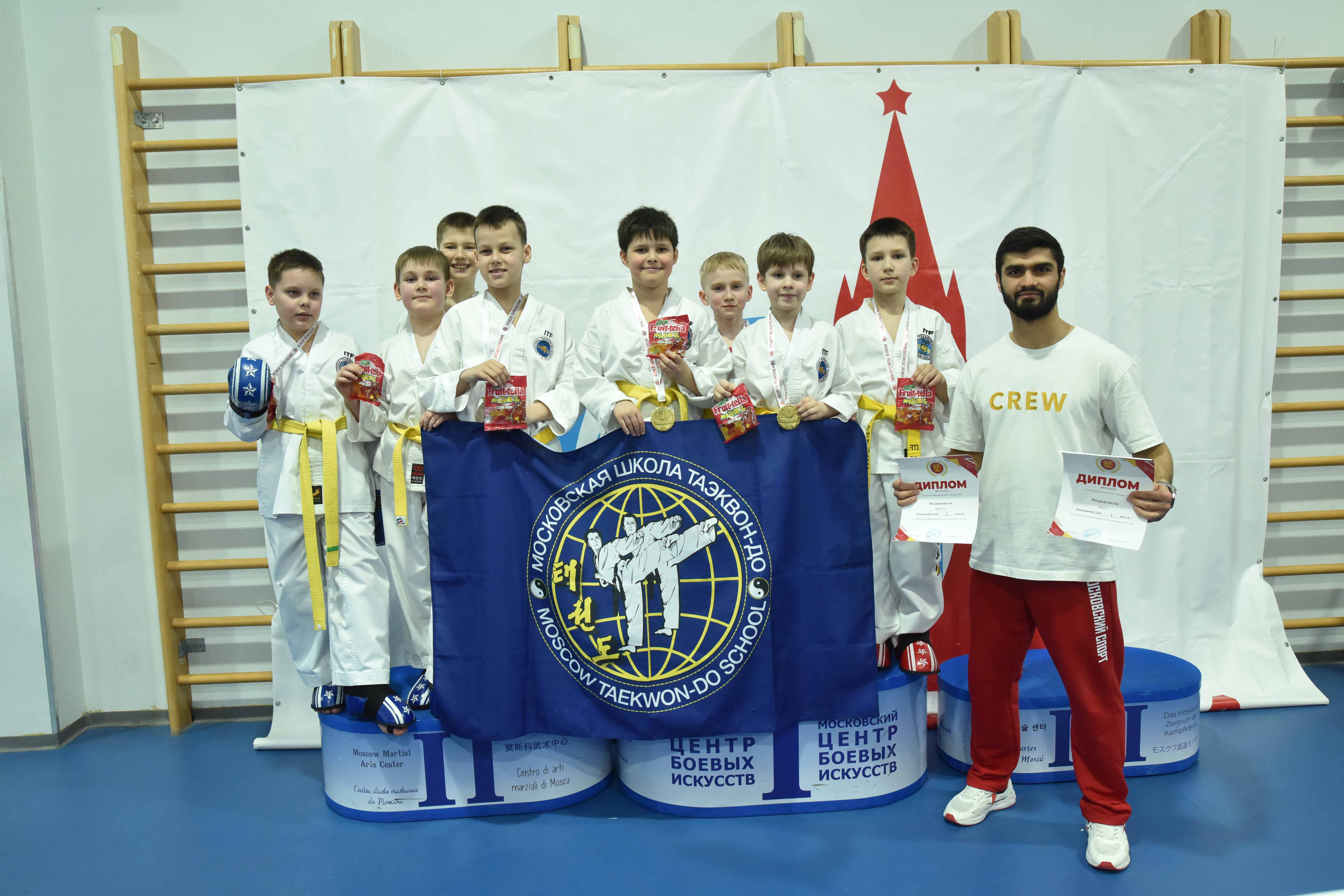 черный пояс, 6 дан, директор Московской школы Таэквон-До, Заслуженный тренер России, Мастер спорта России